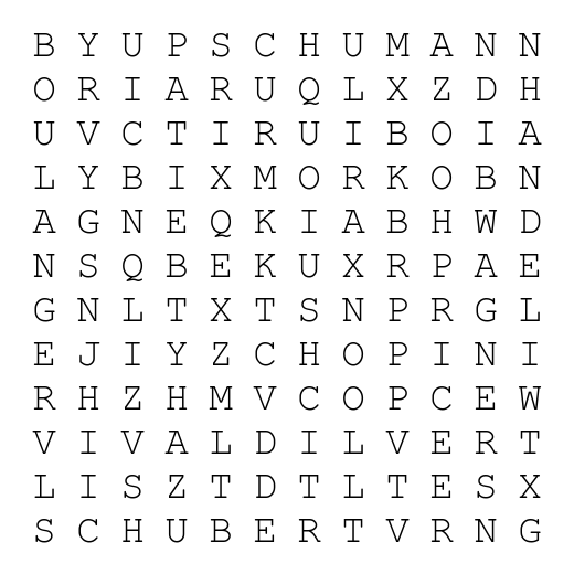Word Search #20 Great Composers
